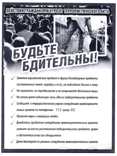Уважаемые жители, информируем Вас о порядке действий граждан в случае возникновения террористических угроз.