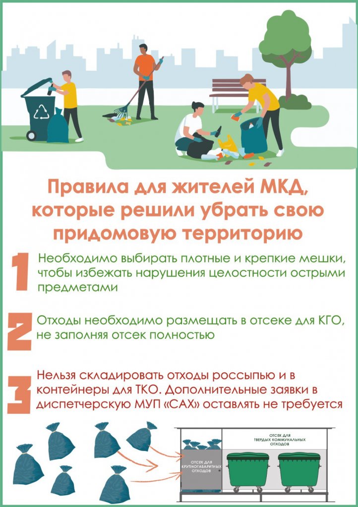 ОБРАТИТЕ ВНИМАНИЕ! В период весенней уборки города возрастает нагрузка на технику и людей, так как в разы увеличивается отходообразование. Чтобы не допустить сбоя по сбору и вывозу ТКО и КГО, мешки после субботников будут вывозиться поэтапно.